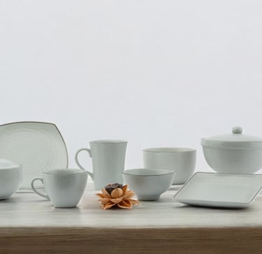 Soft gray tones and delicate spiral textures bring a calming elegance to this collection, perfect for creating a serene and sophisticated dining experience