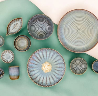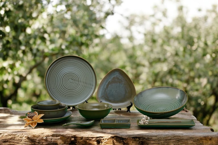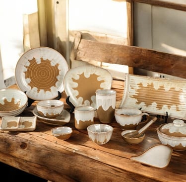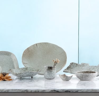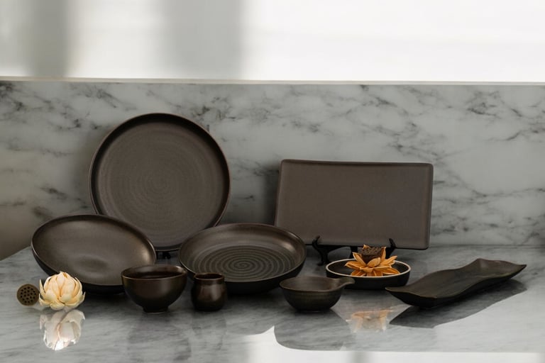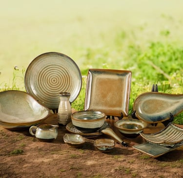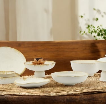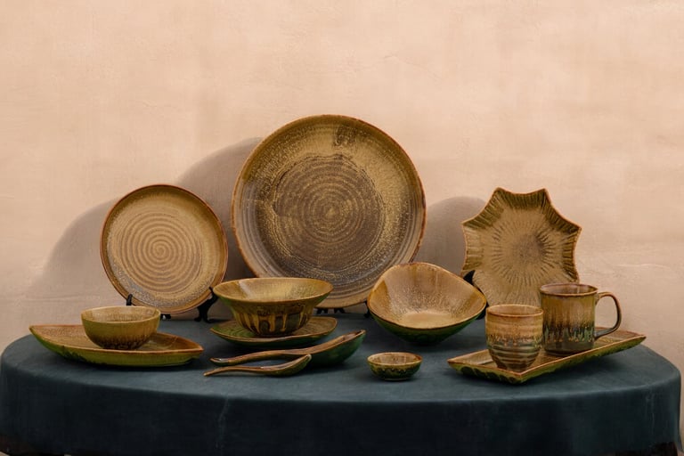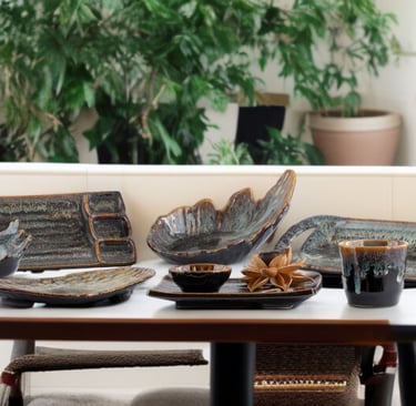 Handcrafted with earthy tones and organic textures, this collection adds warmth and elegance to dining, blending rustic charm with a refined, modern touch