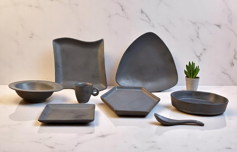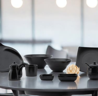 A collection that embodies chic simplicity with its matte black finish, ideal for modern dining elegance and understated presentation