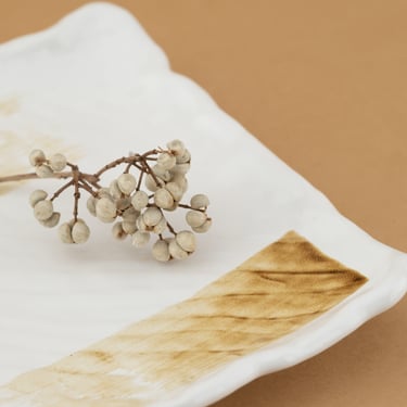 Creamy white glaze with warm brushwork adds comfort and warmth, ideal for casual restaurants focused on familiar, earthy dishes