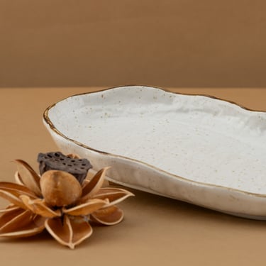 Masterfully crafted, speckled glaze, organic shapes ideal for enhancing elegant dining and artistic culinary presentation in upscale dining environments.